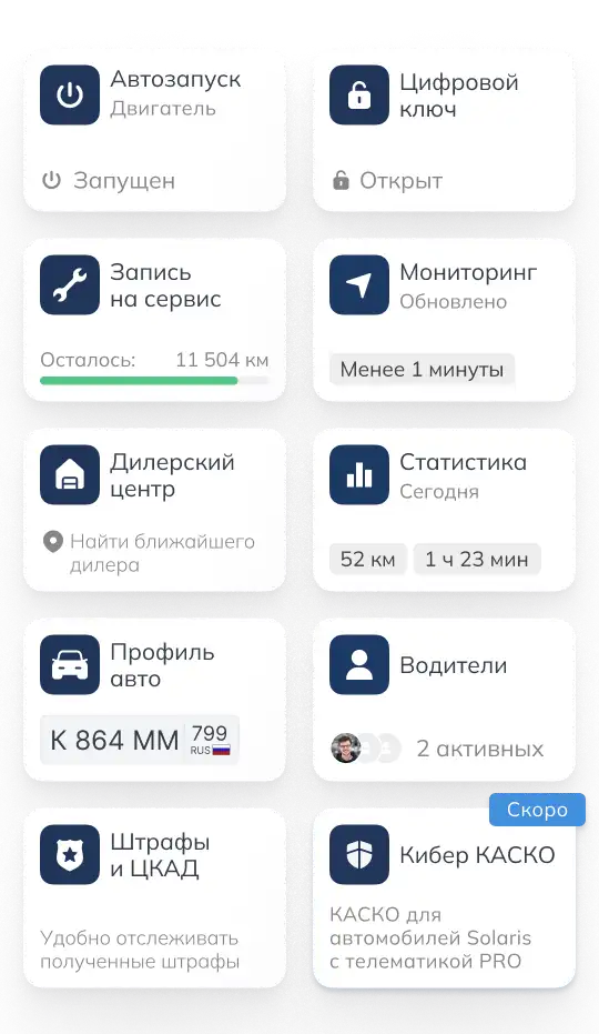 «Цифровой автомобиль - комплексная экосистема бренда Solaris обеспечивает максимальный комфорт благодаря интуитивно понятному управлению через мобильное приложение. Функции телематики позволяют в реальном времени следить за состоянием машины, а автозапуск и дистанционное управление делают каждую поездку комфортной с первых минут. Всё – от обслуживания автомобиля до подключения полезных внешних сервисов – доступно в несколько касаний, что превращает владение автомобилем в лёгкий и приятный процесс».